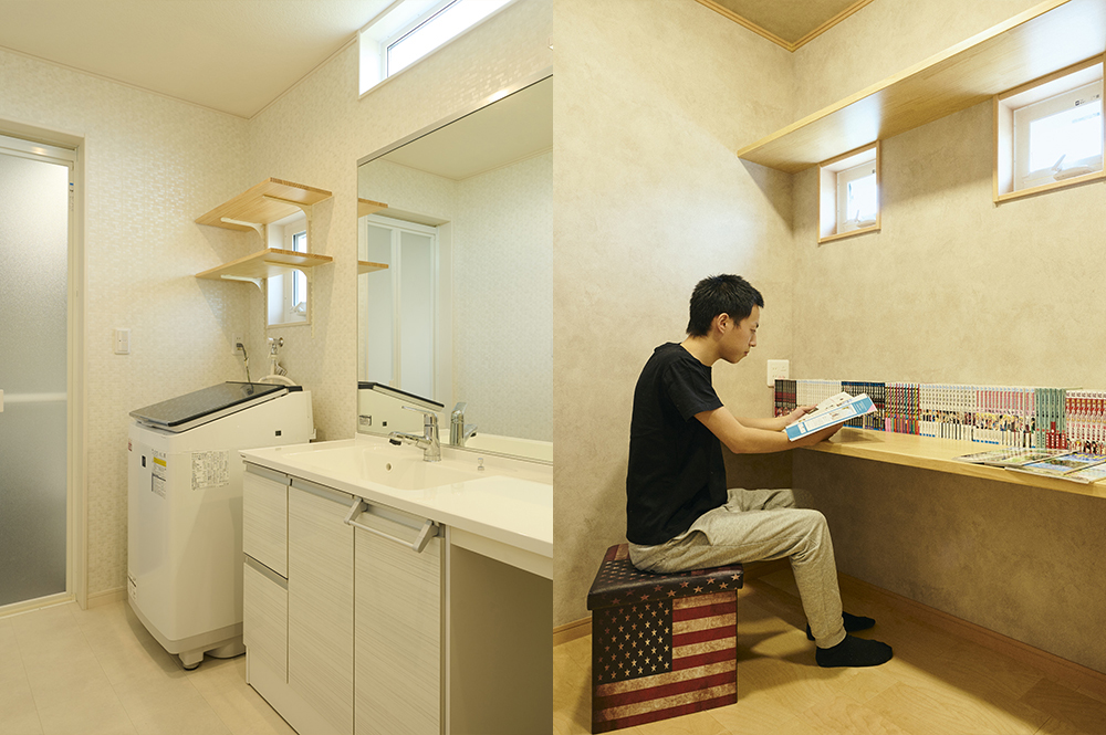 妻:元々2階のスペースが余っていたのと、主人の趣味のゲームや漫画をリビングに置かれるのはちょっと…という思いがあったので、ちょうどいいかなって思って。リビングでゲームしたまま寝られても困りますしね。笑